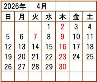 ★毎週木曜日が定休日です。